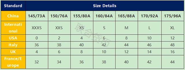 但是,我需要提醒你的是,如果你想买一件特别款式的衣服,比如娇小的,会有不同的尺码。建议您在购买前亲自到商店试穿。其他尺码对比,请参考下面两张表。