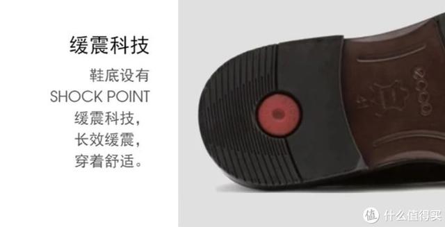 ECCO鞋的鞋底有一个蓝色的圆球,这其实是ECCO发明的减震技术SHOCK POINT,让鞋底更柔软。但是对于刚刚130 kg的体重,据说无论是运动鞋还是皮鞋,都没有感受过气垫带来的缓冲舒适。