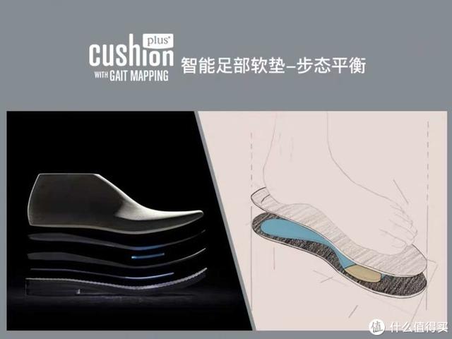 Cushion plus+智能脚垫可精准定位,采用针对性结构的双密度缓震技术,缓解前脚掌压力,符合足部自然行走时的生物力学特性,保持足部舒适。