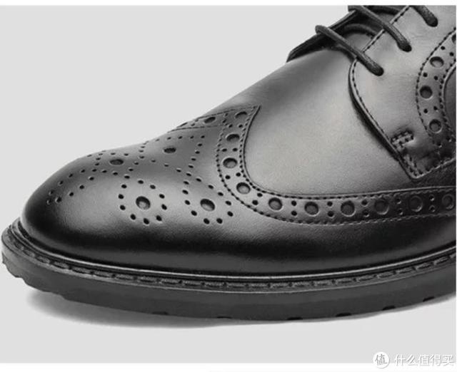 ▼布洛克德比鞋这双黑色布洛克德比鞋可以满足商务场合的需要。他们看起来一点也不沉闷,稳重中带着一点时尚感。鞋面采用牛皮,鞋底采用PU材料。