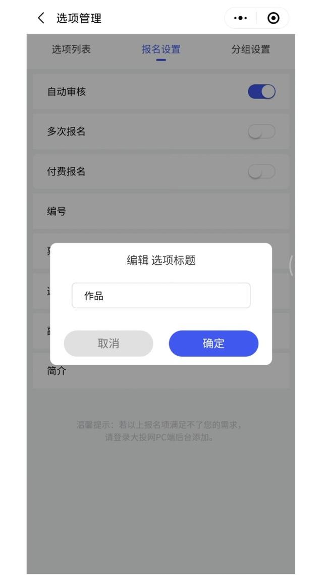如果报名设置页面还是不能满足活动要求,可以登录电脑进行更全面的设置。
