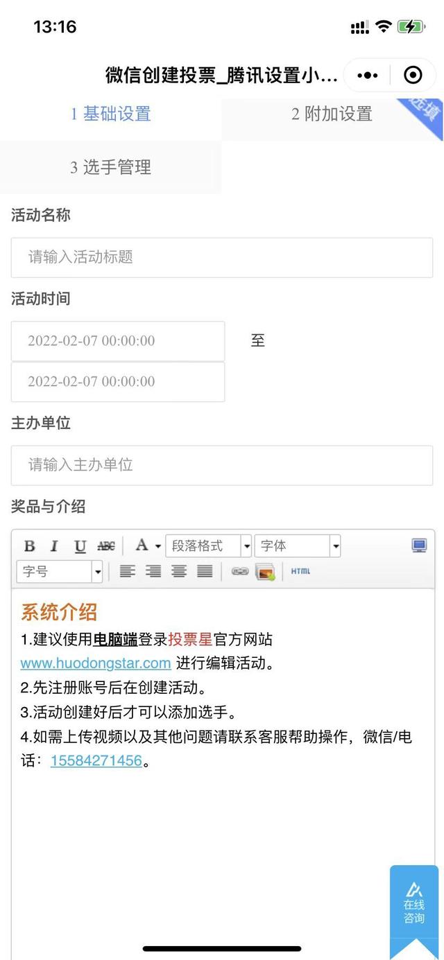 第二步,设置投票活动选项,打开注册设置,注册的开始时间和结束时间,投票的截止时间和结束时间,然后是其他设置,比如是否需要手机号或微信号,注册是否要审核,主办方信息等。注意,重点来了。就像添加一个可以上传视频的注册一样简单。打开是否允许上传视频的开关即可。幸福来得突然,让我应接不暇的问题迎刃而解。