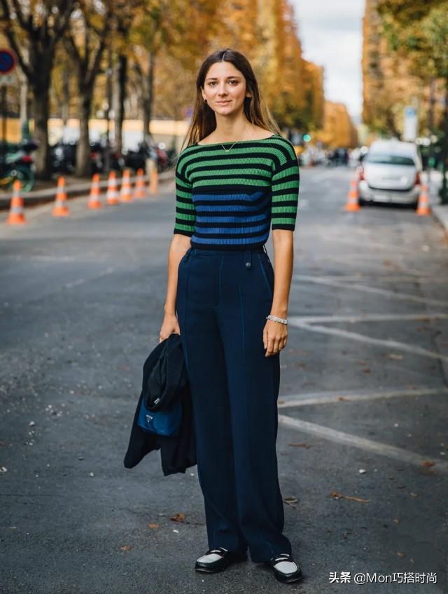 比例不好的人一定要选择高腰款式的阔腿裤,和地型阔腿裤。选择柔软下垂的面料,对腿部修饰效果会更明显。搭配低调的黑白乐福鞋,舒服又超好看!