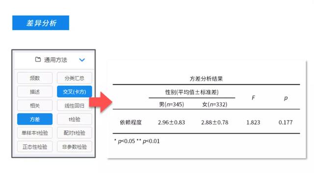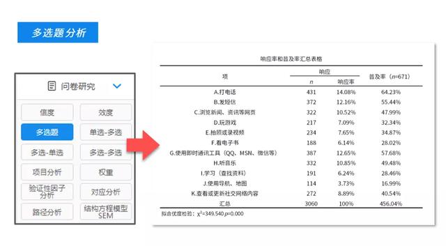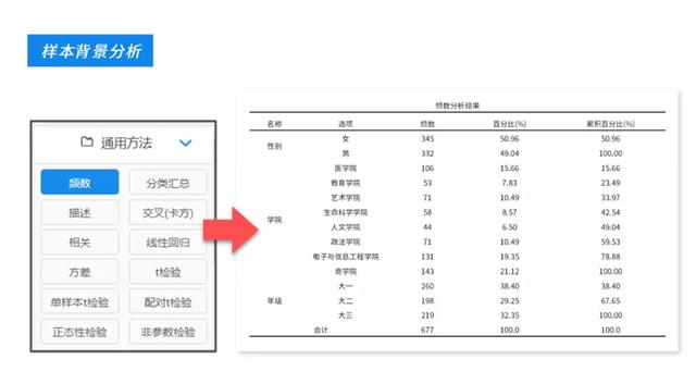 如果想研究不同背景(如性别、年龄)的人之间样本行为(分类数据)的差异,建议可以使用交叉卡方分析、涉及选择题的交叉分析等。,并相应选择【问卷调查】中的【单项选择-多项选择】方法。