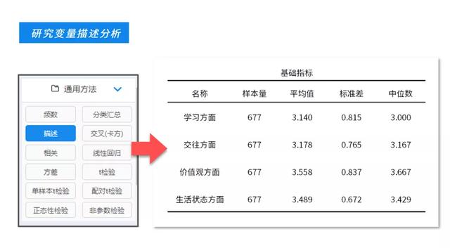 回收的问卷数据可直接上传至SPSSAU进行分析。我们可以按以下顺序分析问卷: