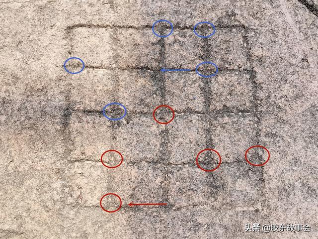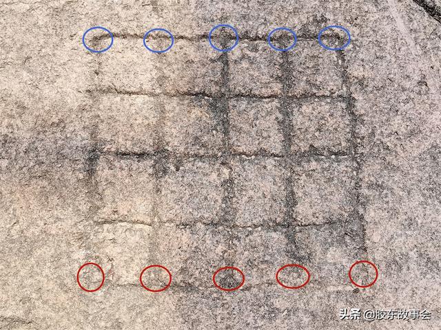 童年的记忆往往是深刻的。虽然我已经有20年左右没有接触过“五子”了,但我还是知道小时候练过的那种形成方法。一次偶然的机会,在这条老巷子里看到了石棋盘,于是索性借花献佛。以这个棋盘为模板,演示介绍几个当年常用的阵法,分享给大家。