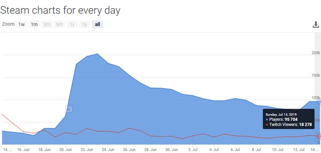 根据SteamDB的统计,自公测开放以来,峰值在线人数一直呈下降趋势,目前已跌破10万。不过V社还在不断优化更新游戏,后续的刀塔霸王绝对是值得一玩的游戏。