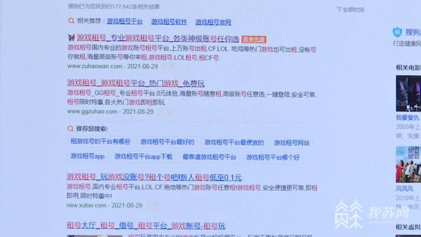 打开搜索引擎,输入关键词“游戏租赁号”,可以看到很多游戏租赁平台。这些平台可以出租手机游戏和端游的多个游戏账号,还提供过夜服务。有些租客想体验先进的设备,有些主播想录制视频,有些未成年人甚至用它们来突破防沉迷系统。