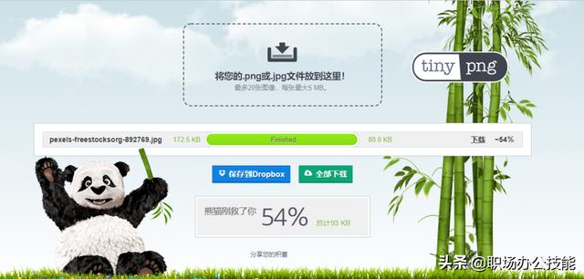 这是一个非常好用的在线图片压缩网站,不需要注册,免费使用,打开网站,直接把图片拖入网站进行图片压缩,最多可以同时压缩20张图片。