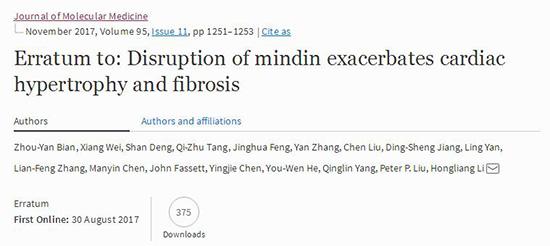 2017年8月30日,分子医学杂志还发表了李洪亮团队在2012年发表的论文(Mindin Exactbates Cardiology and Fibrosis)的更正声明。在本文中,相同的蛋白质蛋白质印迹条带出现在图4C和图4D中。值得一提的是,更正声明中仍有错误,有文中不存在的“图3D”。