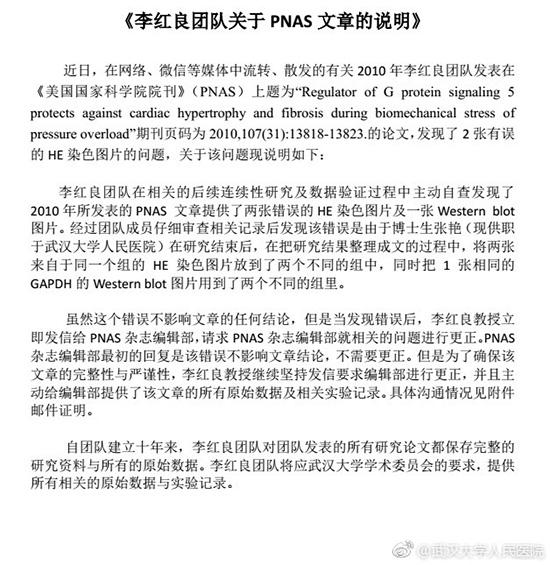 在此之前,1月23日,李洪亮团队还通过武汉大学人民医院官网发布了相关说明。根据解释,《PNAS》杂志编辑部最初回复错误,不影响文章结论,无需更正。但为了保证文章的完整性和严谨性,李洪亮继续给编辑部发函更正,并主动向编辑部提供了修改后文章的全部原始数据和相关实验记录。截至目前,PNAS尚未发布相关更正。
