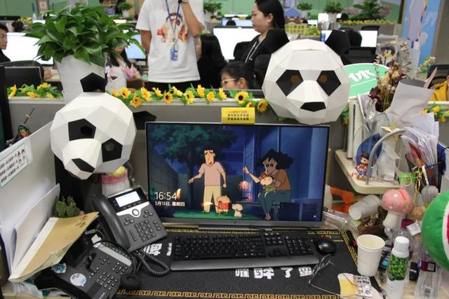这是一间上百人的办公室,天花板上的吊牌上写着“一点慈善点亮孩子的生活”等标语。环顾四周,每个人都是一幅“努力”的画面。最里面一站的温度好像比茶室高3-5度,旁边的客服看我一直在冒汗,递给我一包纸巾。