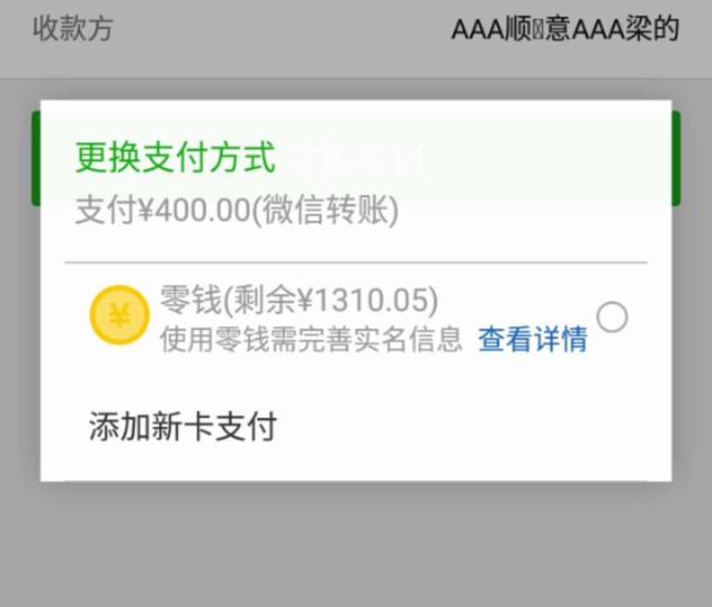 二、微信零钱支付提示:零钱的使用需要完善实名信息。