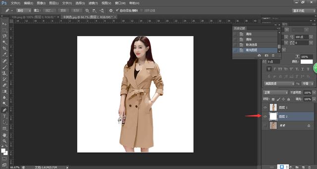 3.3再次按“CTRL+DEL”将“图层2”填充为白色,一张白色的图片就完成了。如下图: