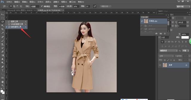 2.1选择工具栏中的“磁性套索工具”或按“SHIFT+L”,如下图所示:
