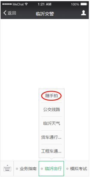1。“临沂交警”微信微信官方账号“临沂出行”模块下的“随意拍照”栏目;