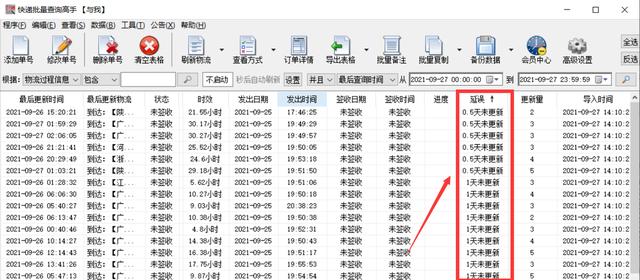 在软件右侧的“延迟”一栏的状态中,可以快速查询到哪些订单号延迟了,还可以看到延迟了多少天。