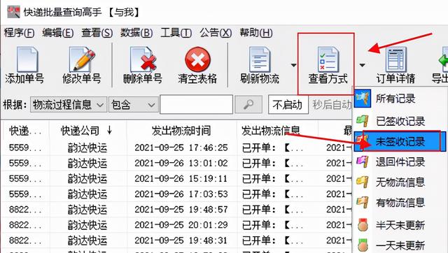 所有查询完成后,可以看到每个单号的物流情况,比如是否签收,送达时间,签收时间。
