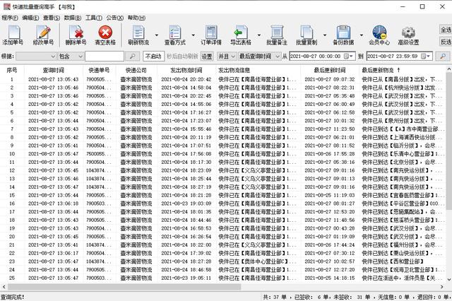滚动进度条,可以看到正在逐一查询单号的物流。