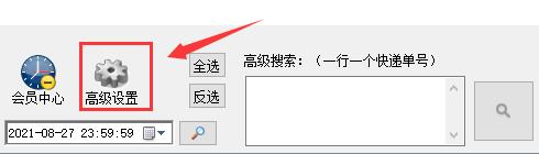 进入快递批量查询主界面,选择右上角的“高级设置”。