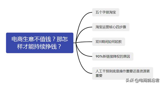 八卦到此为止。今天我们就来说说如何做电商生意才能持续赚钱。我们先来看看思维导图。取长补短的商家可以根据核心内容选择自己想看的部分。想循序渐进学习交流的朋友,建议从头看到尾。