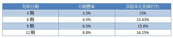 粗略估算,花呗分期实际年化率在15%-16.25%之间。