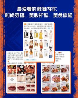 目前,微淘已经聚集了超过百万的内容创作者,包括商家和人才。他们通过“内容种草”俘获了大量的粉丝,淘宝女装商家“宽色”在微淘的店铺里已经开始有了近百万的粉丝。据店铺负责人介绍,他们通过精细化和个性化打造自己的微淘特色,包括整体视觉风格的统一,以及周穿、买手秀、搭配指南等固定栏目。另一位微淘专家“生鲜实验室”被誉为微淘上的美妆美食鉴赏家。东北粉鼠、水果雪糕、螺蛳粉等各种网络名人美食的评价都可以在这里找到。
