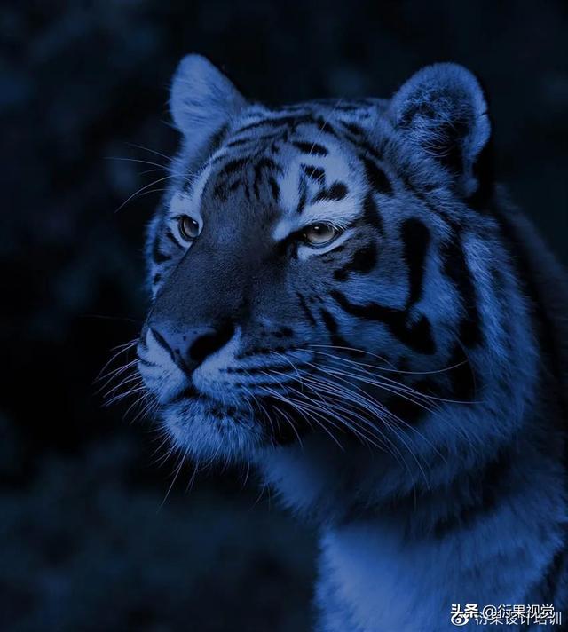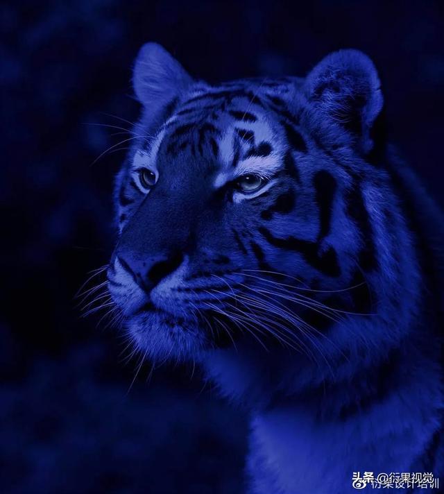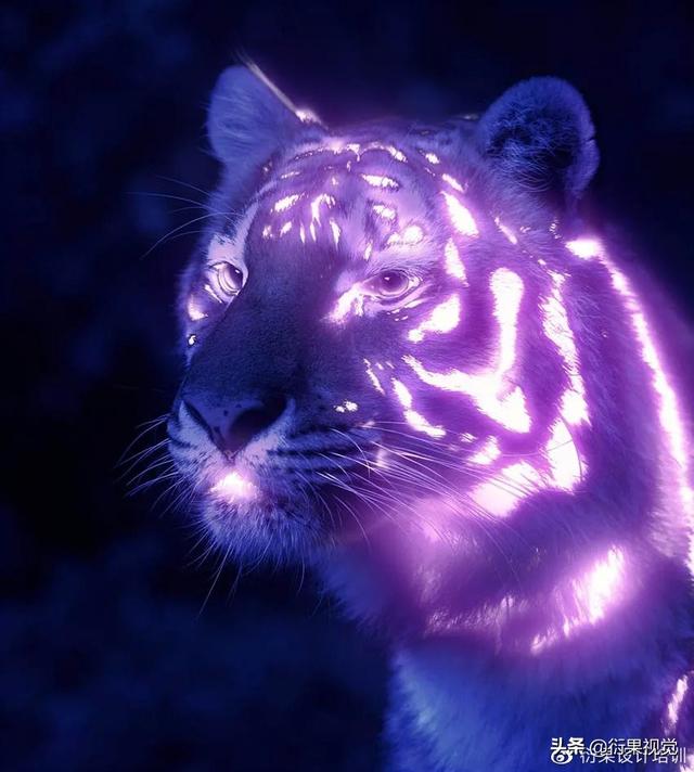 步骤1我们将为这只老虎的条纹添加一个发光效果,但为了让霓虹灯真正弹出来,我想将这张图片从白天改为夜间。这一步是完全可选的,最终会在图像之间改变。但是对于今天的图像光照效果,首先要从44%不透明度的黑到白渐变贴图的调整层开始。