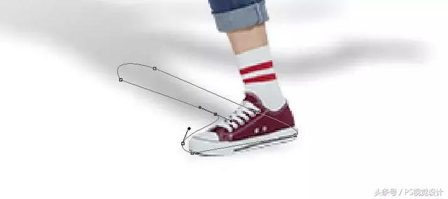 4。至此,我们发现产品还是有点站不住脚,所以要加深产品贴近地面的投影,可以用钢笔工具沿着产品底边画一个轮廓。