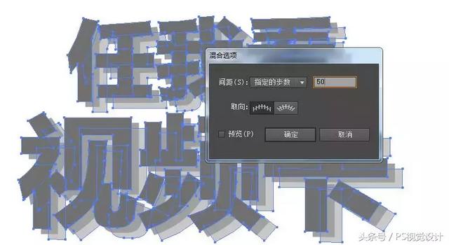 然后选中这两个图层,用混合工具在它们之间拖动,出现以下效果时用鼠标双击混合工具。