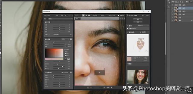 5.【Ctrl+J】复制图层、【滤镜】-【IMA基因组】-【人像】、【吸管】点击皮肤,如图。