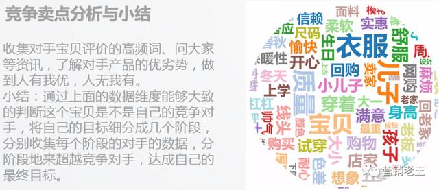研究过去30天顶级品牌销量的市场占有率,找到销量上的顶级超越对象作为推广目标。通过抓取宝贝的搜索关键词数据,了解对手单品宝贝的大致流量结构和占比,结合自身流量渠道资源,宝贝的转化率是否能超越对手等。收集对手宝贝评价的高频词,问问大家等信息,了解对手产品的优劣。