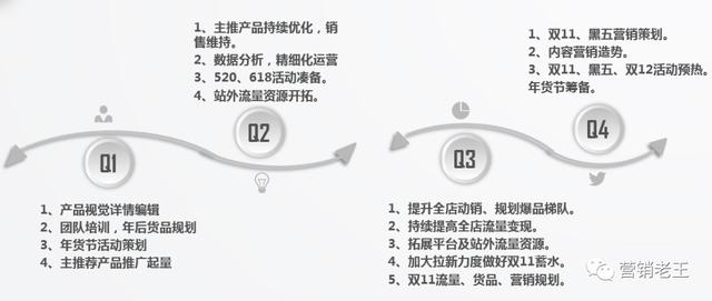 目标分解:年度营销节奏布局根据平台营销活动节奏进行分解,提前对重点资源的布局进行规划,具体对应主要产品和提炼所需流量。