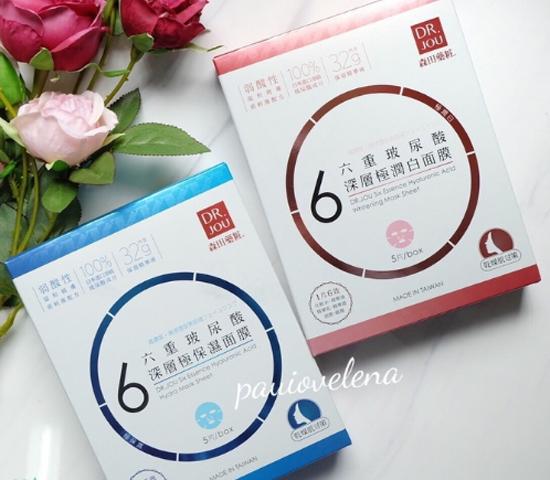 我最喜欢的是它的玻尿酸系列,补水效果极佳。这两盒是新出的六折玻尿酸系列,蓝色的保湿,红色的美白~我刚用了一片蓝色,感觉还不错~首先面膜纸够大,脸大的人都很喜欢。其次,面膜纸hin薄,本质上贼多,用手敷脖子绰绰有余。最后一点就是涂完不会粘,不会干,不会油,真的很滋润。