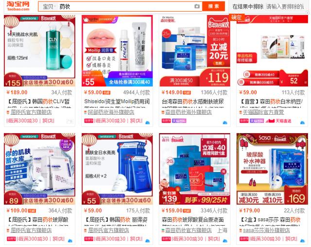 杜南记者在某电商平台输入“药妆”进行搜索,搜索结果弹出100页,涵盖面霜、乳液、面膜、护手霜、脱毛膏等多个品类其中不乏一些知名品牌,如森田药妆、雪肌精、芙丽芳斯、科润、杨亚、理肤泉、贝德玛等。