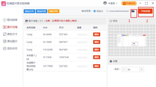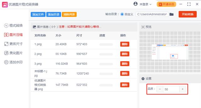第二步:调整右边的质量。质量值越小,图像压缩就越小。一般默认值是90,我们调整为50。