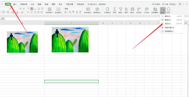 然后,在开始子菜单中,我们单击查找,在单击查找后,会出现一个下拉列表,我们单击定位:
