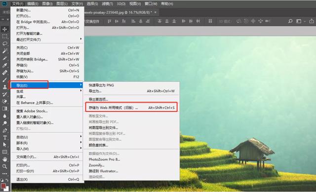 压缩方式:在PS中打开要压缩的图片,直接点击【文件】——另存为【WEB格式文件】。