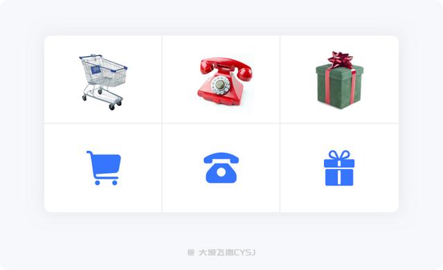 图标用抽象的图形来表示现实世界中的事件/事务。如果因为追求完美而导致设计过于复杂,还不如直接上传图片来得快。所以不能过多展示实物的细节。最终设计出正确、不失真的图标显得尤为重要,既能用来传达信息,又能方便用户快速清晰的感知。