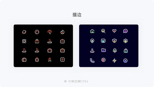 线条和表面组合的图标既有线段或轮廓,也有填充色块。相比纯线/面单一风格的图标,细节更丰富。如果控制得当,会有更好的视觉效果和信息传递效率,而且不会失去趣味性。