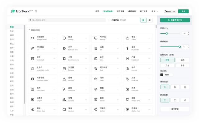 https://iconpark.oceanengine.com/official,海量资源可在线修改,调整笔画、填充、单/双/多色、端点后可下载SVG格式图标。