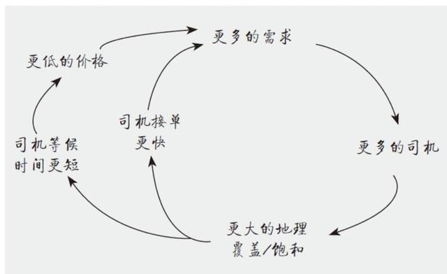 网络效果大致如下图所示。这是优步在《平台革命》中的良性循环模型的草图,很好理解。