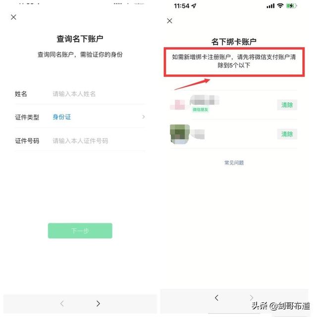 来到查询页面,要求输入身份证号和姓名,随后是一系列的人脸识别。通过后可以看到你名下注册了多少条微信。如果发现哪个不是自己注册的,可以选择清除。