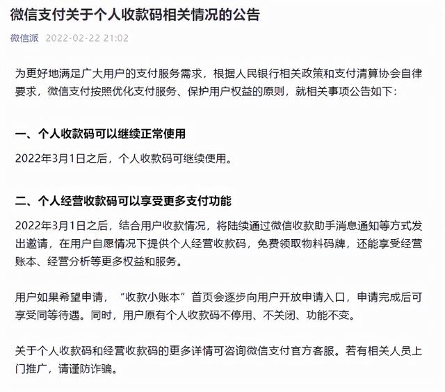 关于个人收款码和运营收款码的更多详情,请咨询微信支付官方客服。如果相关人员上门推销,请谨防诈骗。