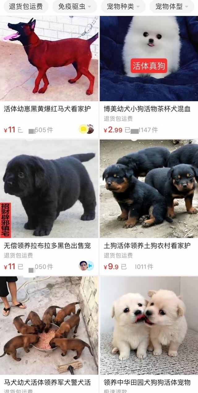 在另一个电子商务平台上,猫和狗等宠物被低价出售,其中许多是通过ZTO快递运输的。杜南记者看到,幼犬价格低至10元,销量突破千元。但是,很多买家收到货后,发现并没有达到预期。在评论区,很多人抱怨“货不对板”,还有人说“病狗送来了”、“收到货没几天就死了”。