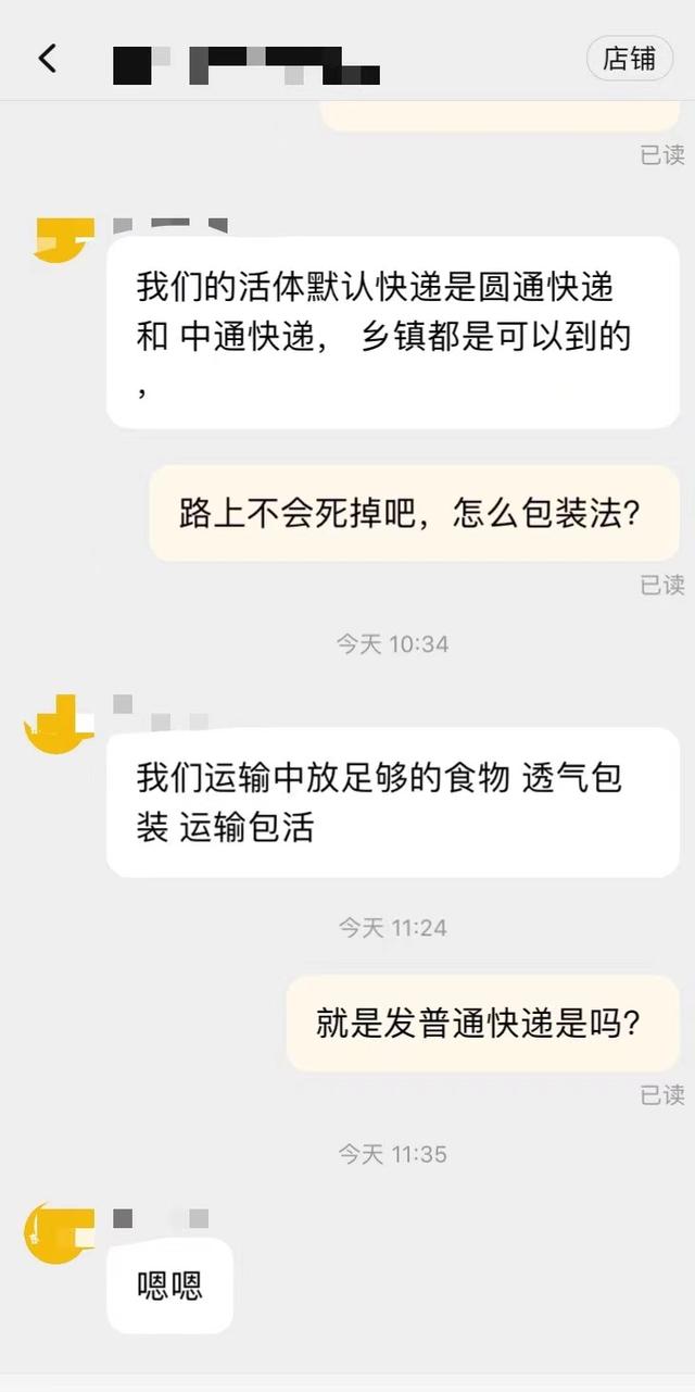 收到的动物不幸死亡怎么办?多位卖家表示,“运输包”,如果动物死亡,可以退款或补办,还有不少表示,“这种情况很少发生”。