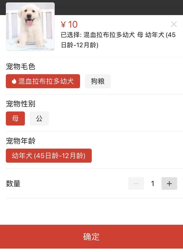 一只“混血拉布拉多幼犬妈妈(45天大到12个月大)”,拼完就10块钱。网络截图