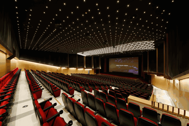 629个座位的超大空间,4K+杜比全景声的极致观影体验。更特别的是,在这里只要抬头就能看到星空!
