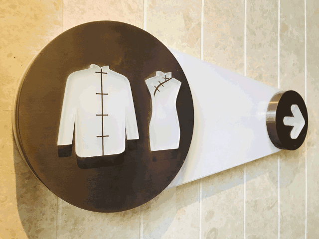 ▲洗手间的标志是中式服装,看起来特别可爱。