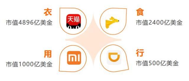 而在消费者集中的“衣食住行”四大领域,分别形成了具有主导地位的“商业巨头”,其他企业尤其是中小企业几乎不可能跻身其中。